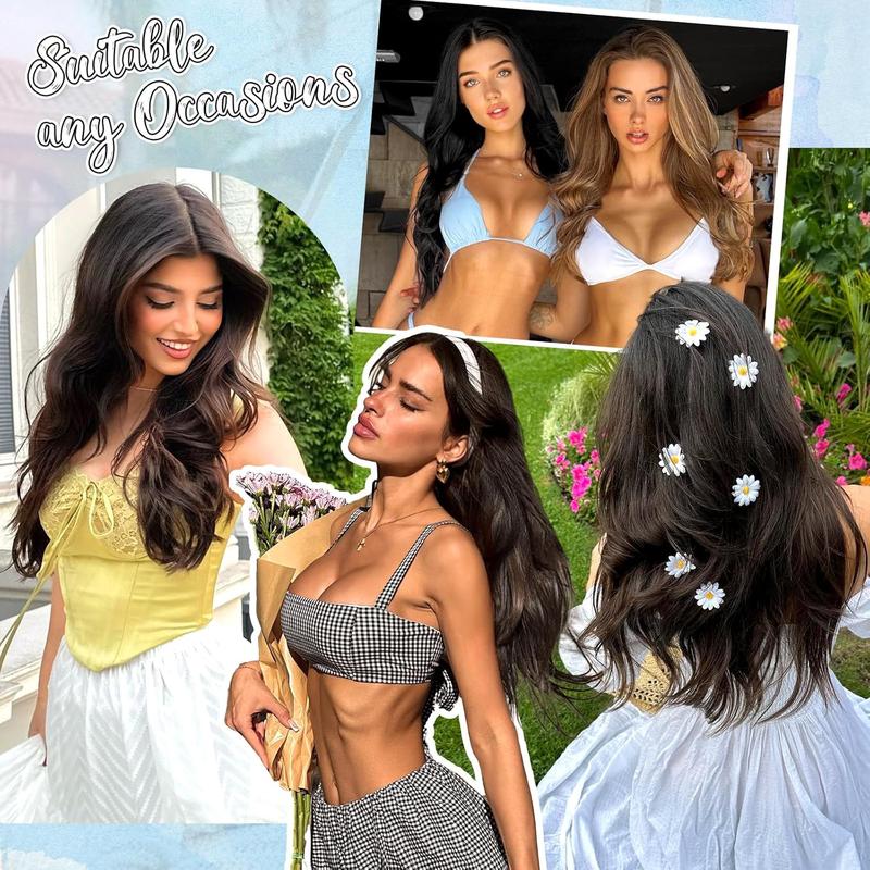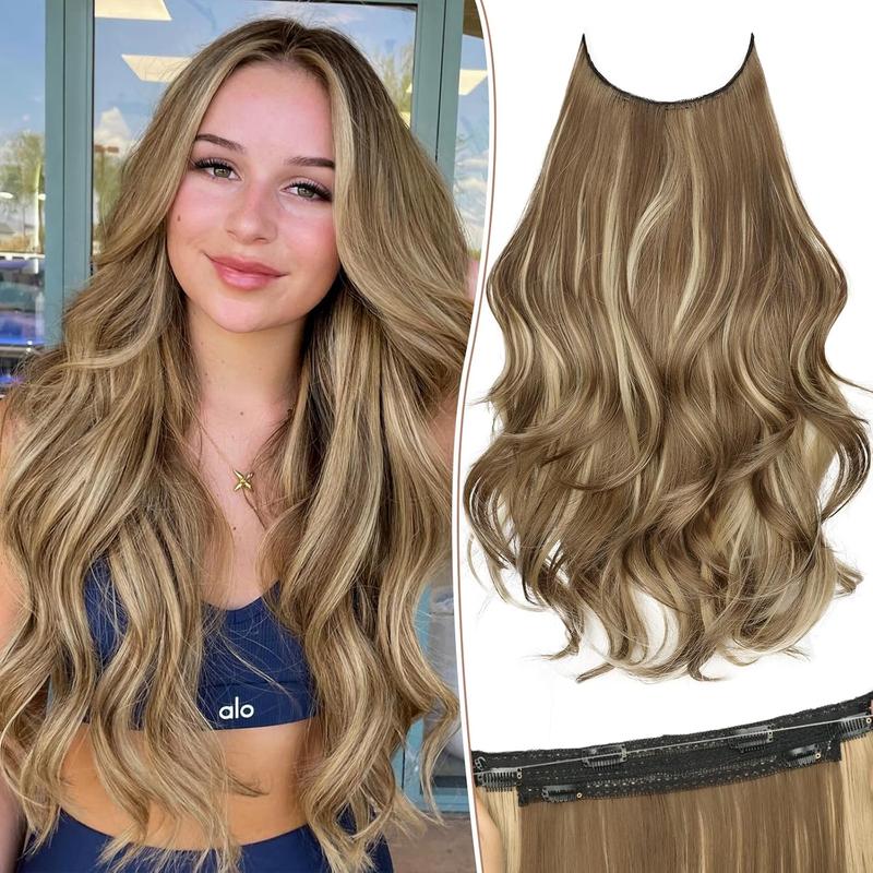 About This Item Get Layered Hair In Seconds Transform your look instantly with KooKaStyle’s upgraded invisible wire hair extensions! Designed for effortless volume and length, these extensions feature a thinner, softer, and breathable double weft made from lightweight, heat-resistant synthetic fibers. Perfectly blends with your natural hair for a salon-quality finish at home.User-Centered Design Specially crafted for fragile hair, these extensions now come with 6 secure clips (instead of 4) for even weight distribution and a more natural hold. The widened double weft ensures full coverage, giving your hair a natural, voluminous look from every angle.Long, Wavy Layered Hair Extensions Add instant length and volume while creating beautiful, layered hairstyles. The layered design seamlessly blends with your natural hair, helping you achieve a unique, stylish look effortlessly.Easy to Wear in 3 Simple Steps·Separate your hair above your ears, about 1-1.5 inches from your hairline, and leave it on top.·Adjust the invisible wire to fit your head size and place it at the back.·Secure with the 6 clips and release the top hair to hide the wire. Voila! You’re ready to shine.Color Note All items are photographed in real life. Due to lighting and screen differences, colors may vary slightly from the images. We strive to provide accurate descriptions, but if you have any questions, feel free to contact us. We’ll respond within 24 hours!
