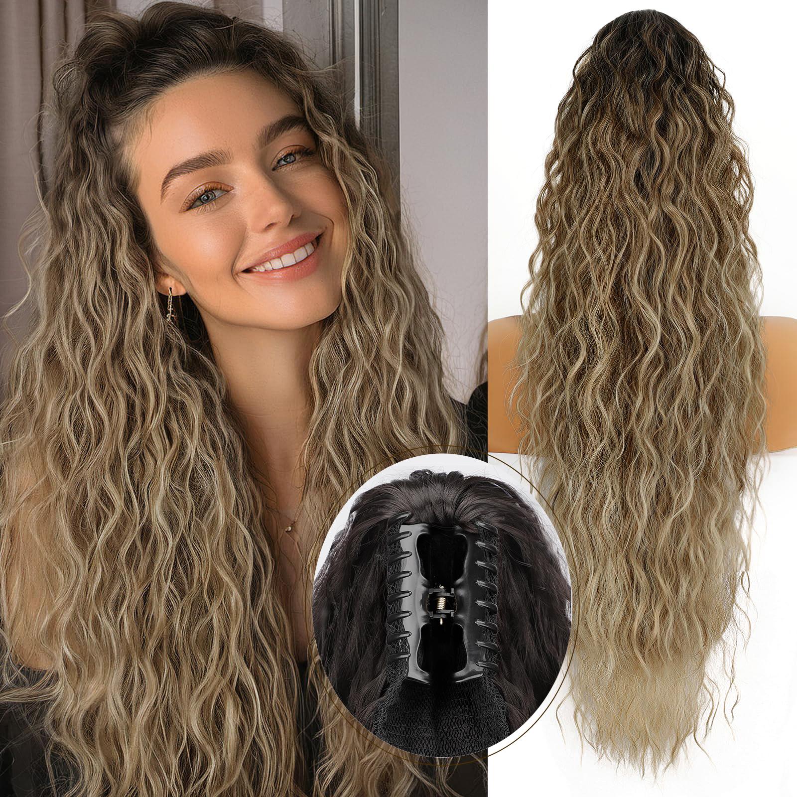 KooKaStyle Wavy Claw Ponytail Extension 18/30 Inch Curly Synthetic Hairpiece for Women