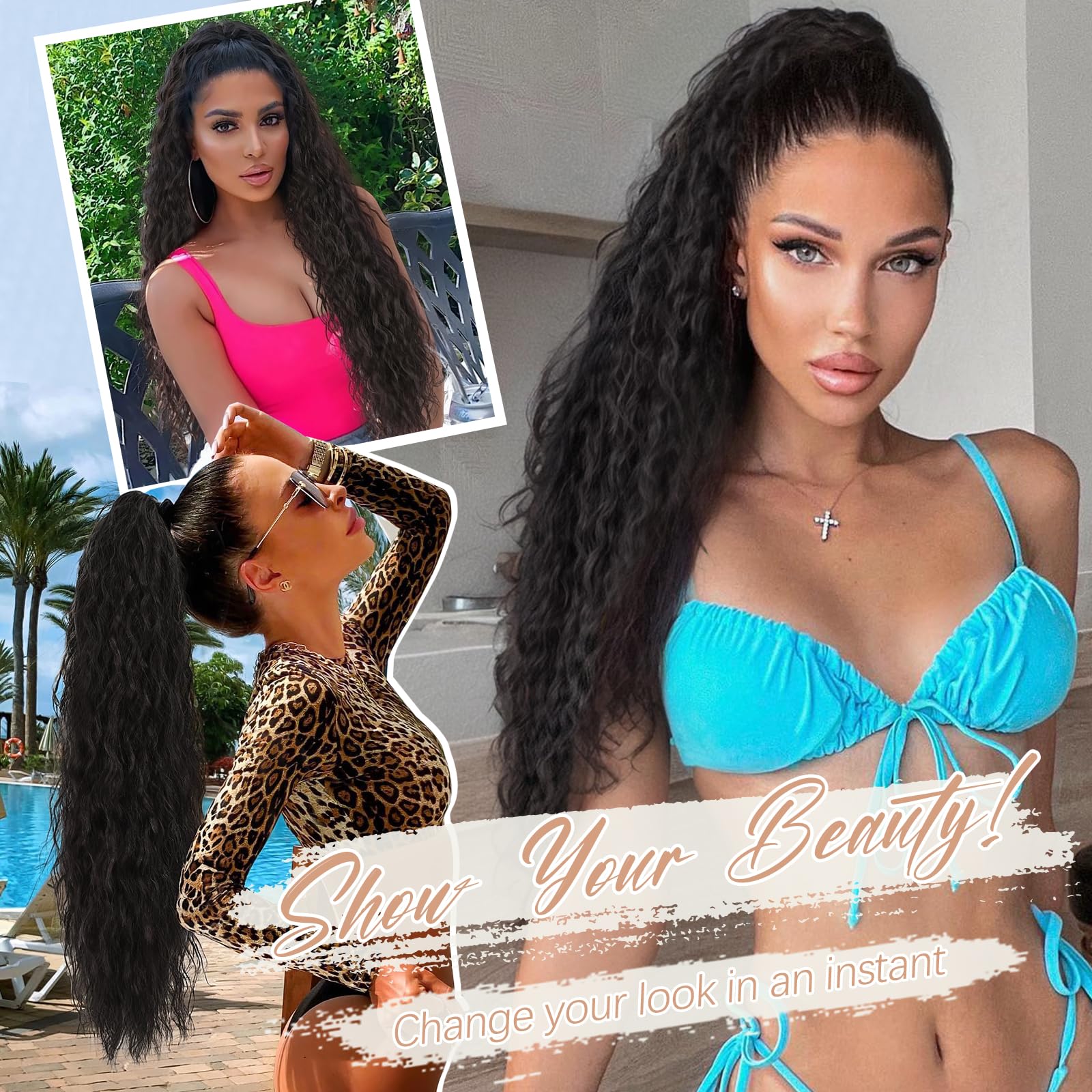 【Material Introduction】Our ponytail extensions is made of premium synthetic fibers. Safe, comfortable, and beautiful Touch with your hands as soft as your hair. Length: 30 inch wavy Weight: 160g.