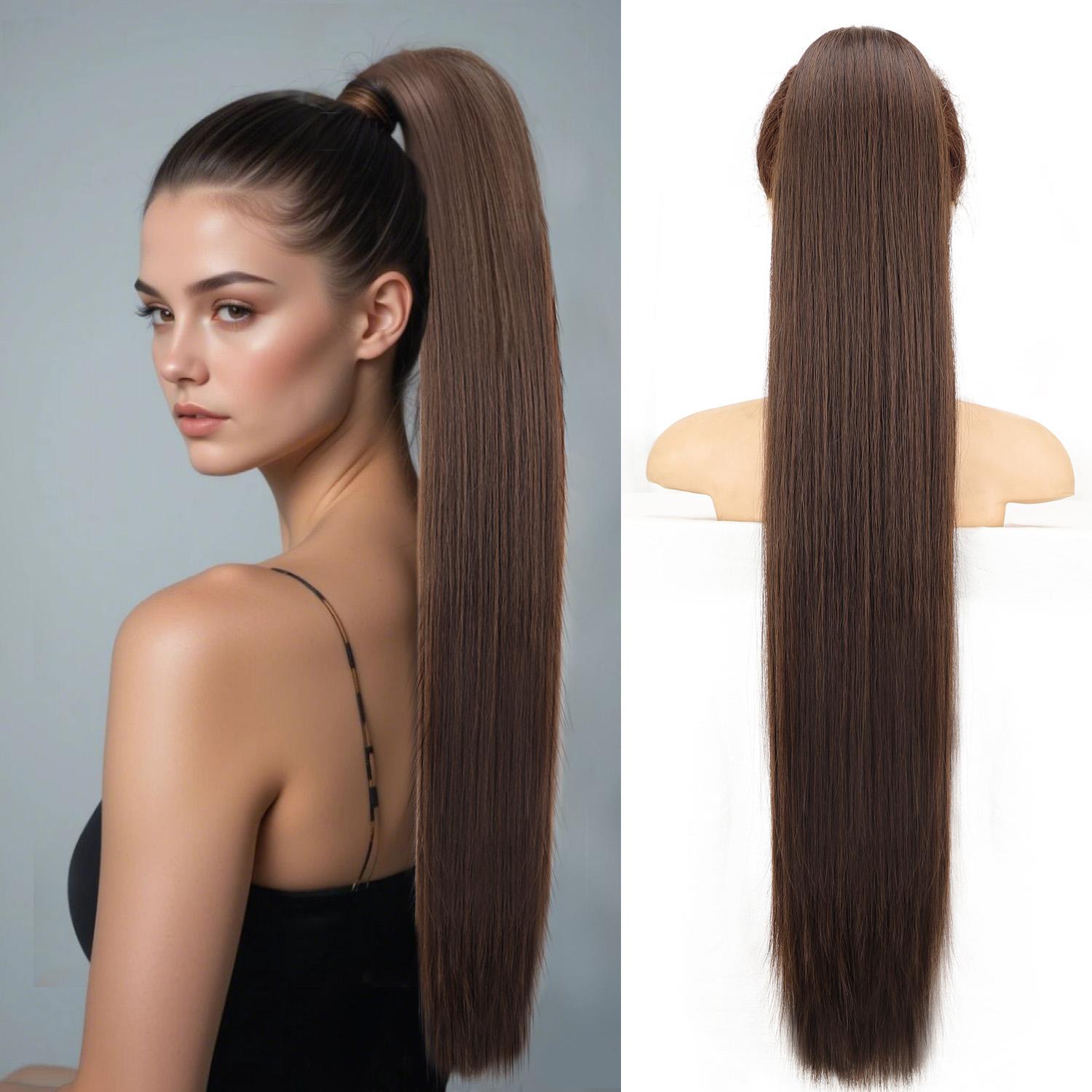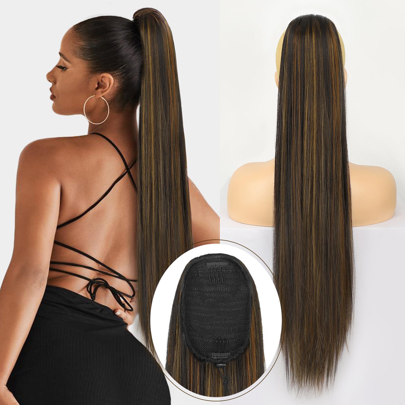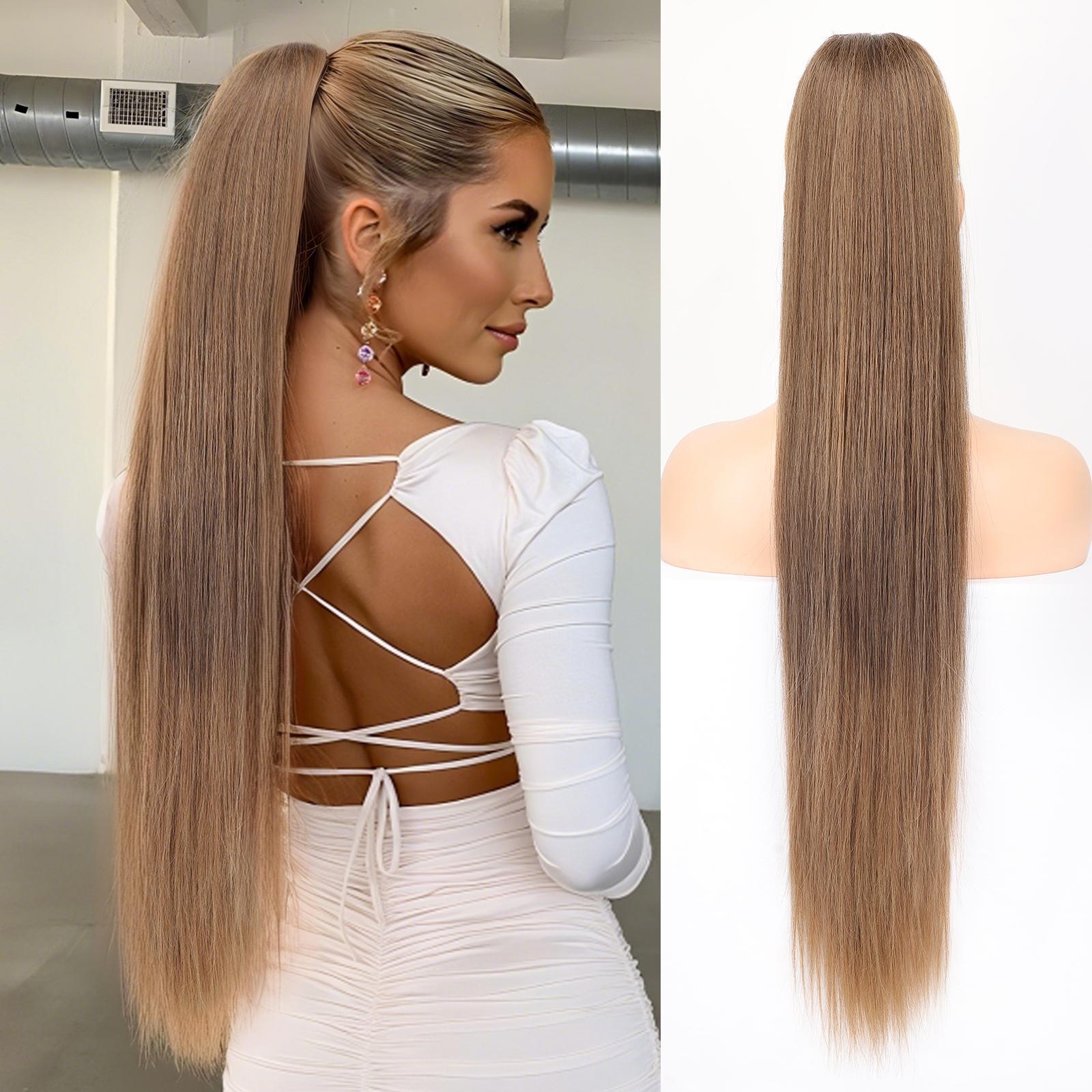 - Washable and Reuse - Before washing the fake pony tail, please comb it first, then wash with cold water, adding some shampoo and conditioner, roll it in a towel and let it air dry