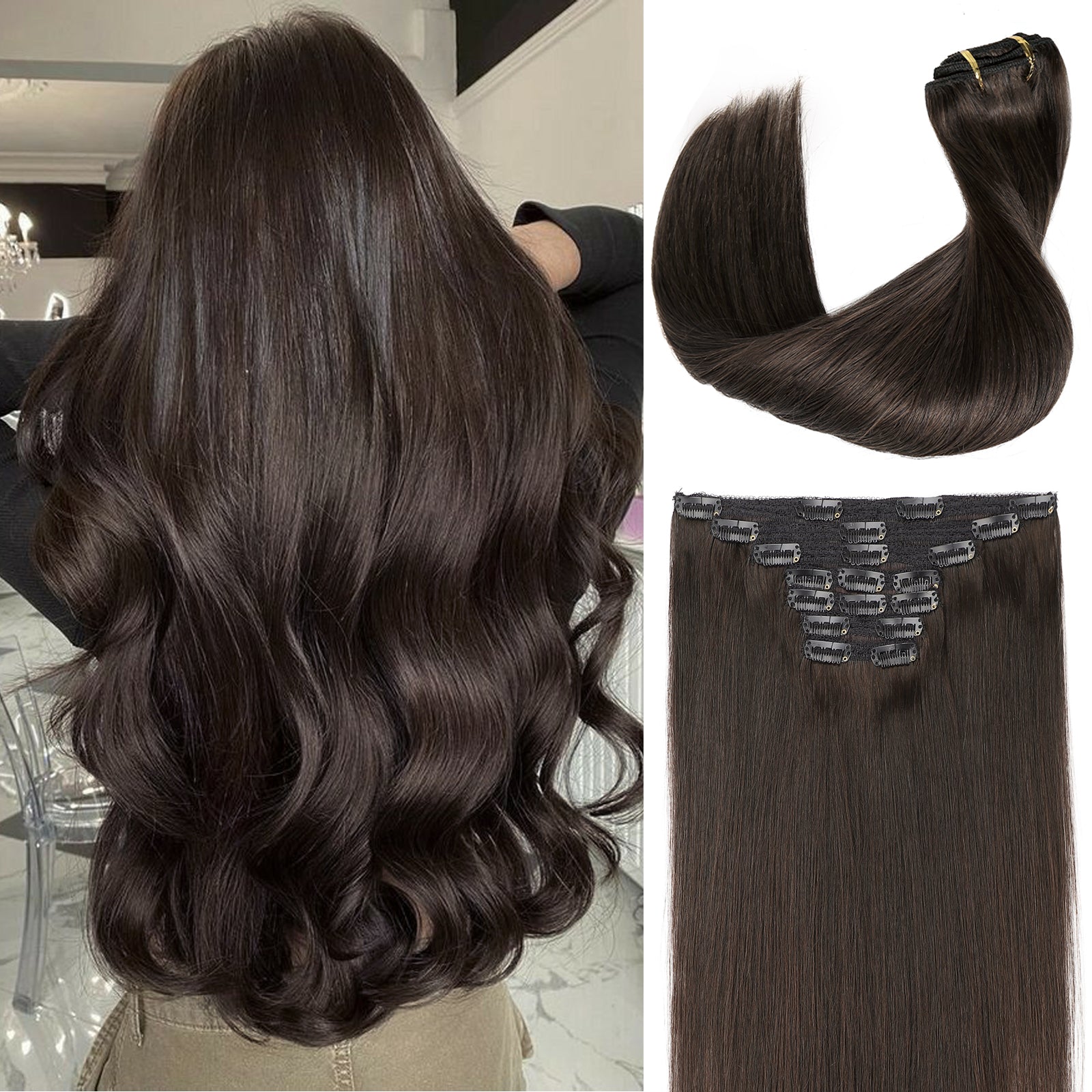 KooKaStyle Real Human Hair Clip-in Extensions | 7PCS 120g Straight Soft & Silky Natural Hair for Women