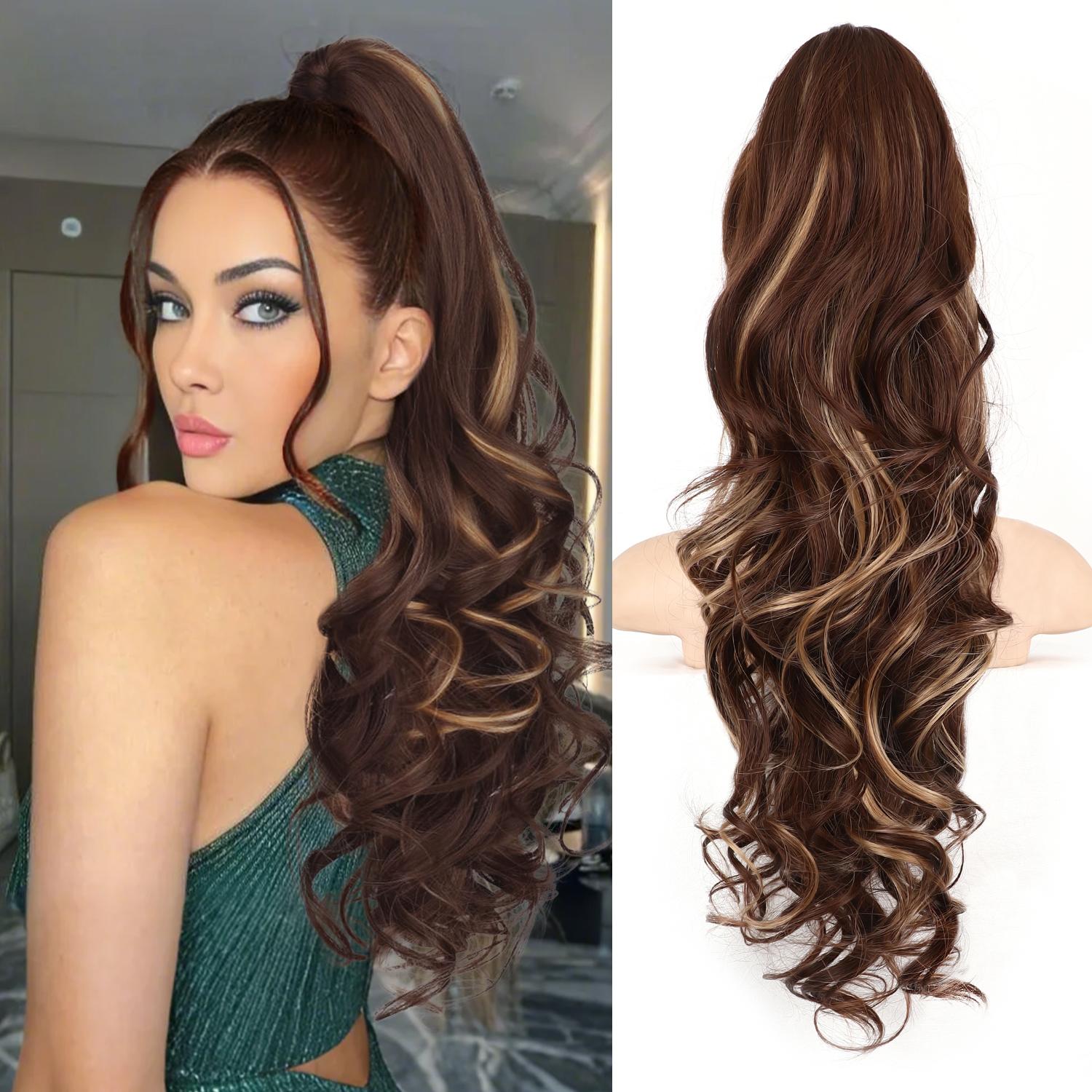 ·【Fluffy, Natural and Soft】The 24" Long Wavy Ponytail Extension are made of high-quality synthetic fibers, which make the ponytail extensions look very natural, soft and fluffy. After receiving the package, take out the ponytail, shake it left and right, front and back, and spray some water or conditioning liquid to achieve a full and fluffy effect.·【Easy to Wear】 This ponytail uses a new upgraded claw clip design. It takes less than 1 minute to fix the claw clip to your favorite height, wearing the ponytail extensions will instantly change your face shape and make you look radiant. It feels soft, just like real hair, no fake shine, suitable for all-day wear·【Suitable for Any Occasion】Whether you are going to work, daily wear, birthday party wear or attending special occasions such as banquets, this ponytail hair extension is the perfect accessory to add volume and charm to your hairstyle. It is also a great gift for your wife, daughter and friends.·【Solve Your Troubles】 If you have short hair, insufficient hair volume, or want to have a new hairstyle but don't want to waste time and money at the barber shop, this ponytail hair extensions is your best choice, it is super cost-effective and does not waste time.·【Warm Tips】If the ponytail is tangled, you don't have to worry, just spray it with water/mousse, comb it from bottom to top with your fingers or a comb, and slowly separate it. It's very easy to solve. Due to the shooting lighting and the color difference of different monitors, there may be some color difference between the picture and the actual product, which is normal. If you have any questions, please contact us.