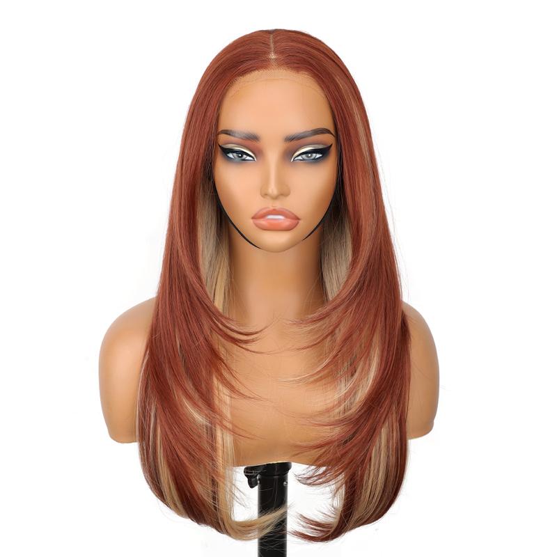 KooKaStyle Black Wig with Bangs | 24" Glueless Synthetic Lace Front Wig for Women, Pre-Plucked & Pre-Cut, Layered Highlight, Ready-to-Wear Middle Part